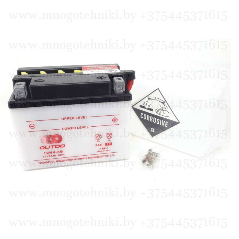 Аккумулятор (АКБ) 12V, 4Ah "OUTDO" 12N4-3B (127*70*92) сухозаряженный с электролитом для мототехники