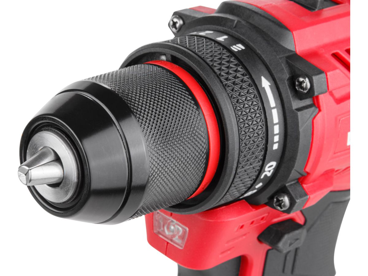 Модель оснащена бесщеточным двигателем, что гарантирует надежность и продлевает срок службы аккумуляторной дрели-шуруповерта.
