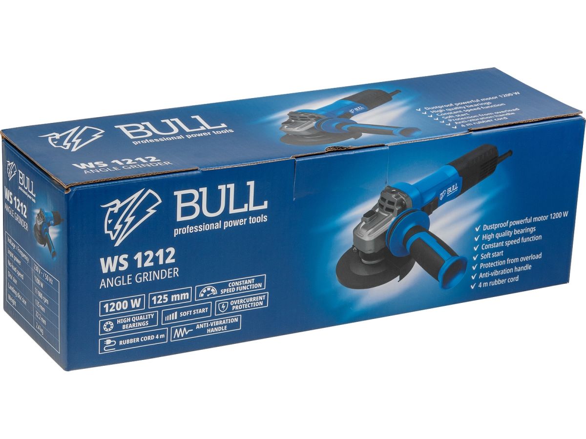 Новая ушм BULL WS 1212 оснащена долговечным и производительным пылезащищенным двигателем 1200 Вт.