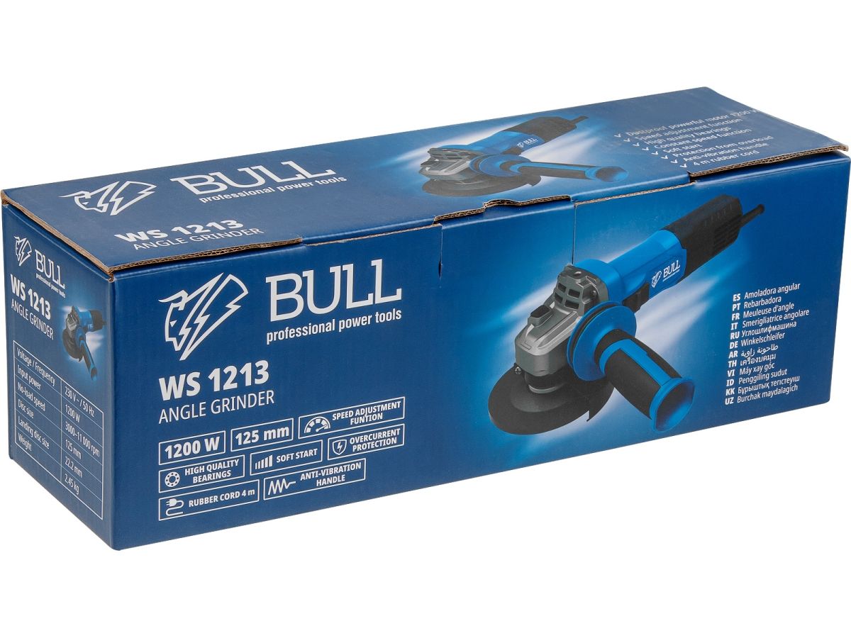 Новая ушм BULL WS 1213 оснащена долговечным и производительным пылезащищенным двигателем 1200 Вт.